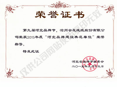 河北品牌建設典范單位
